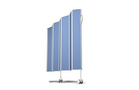 Zástěna zavěšená na mobilní podvozek je snadné řešení, jak vytvořit volně stojící zástěnu.